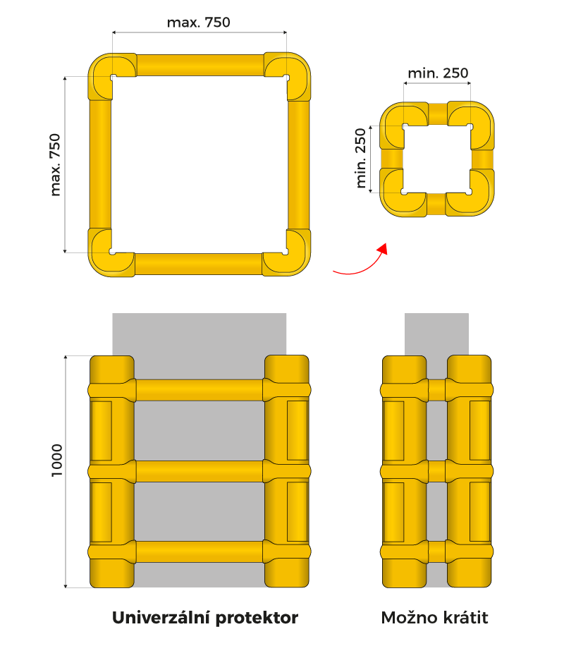 - Univerzální použití - Vhodné pro ochranu sloupů, regálů, profilů i dalších konstrukcí