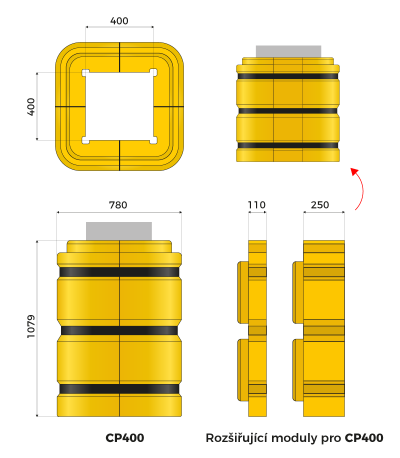 Dostupné ve 4 variantách pro různé typy aplikací a rozměry chráněných objektů. Tento produkt představuje ekonomickou ochranu infrastruktury před nákladnými opravami. Chrání nejen samotné konstrukce, ale také zajišťuje bezpečnost zaměstnanců díky své výrazné viditelnosti a spolehlivé absorpci nárazové energie.