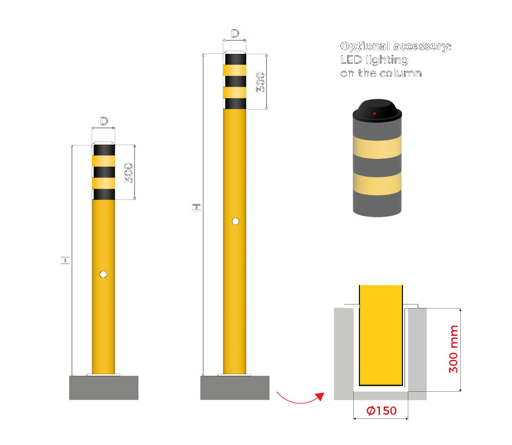 High Visibility Bollards are specialized safety elements designed to alert and mark hazardous or restricted zones in your facility. These posts primarily serve as visual warnings and help guide the movement of people and vehicles in critical areas.