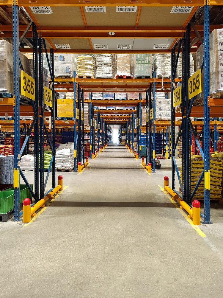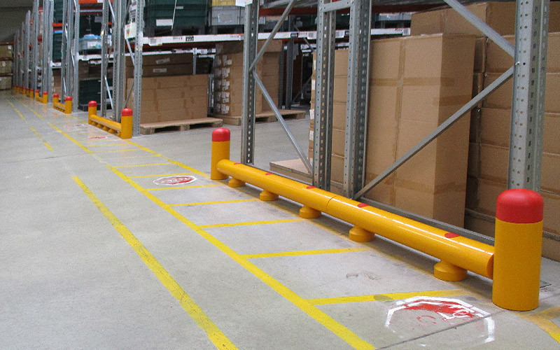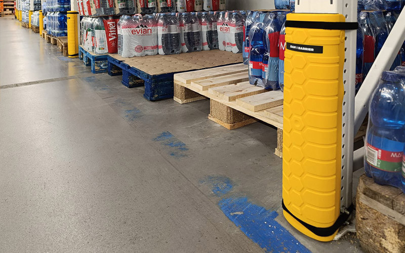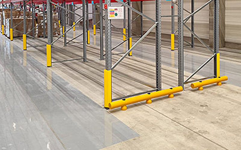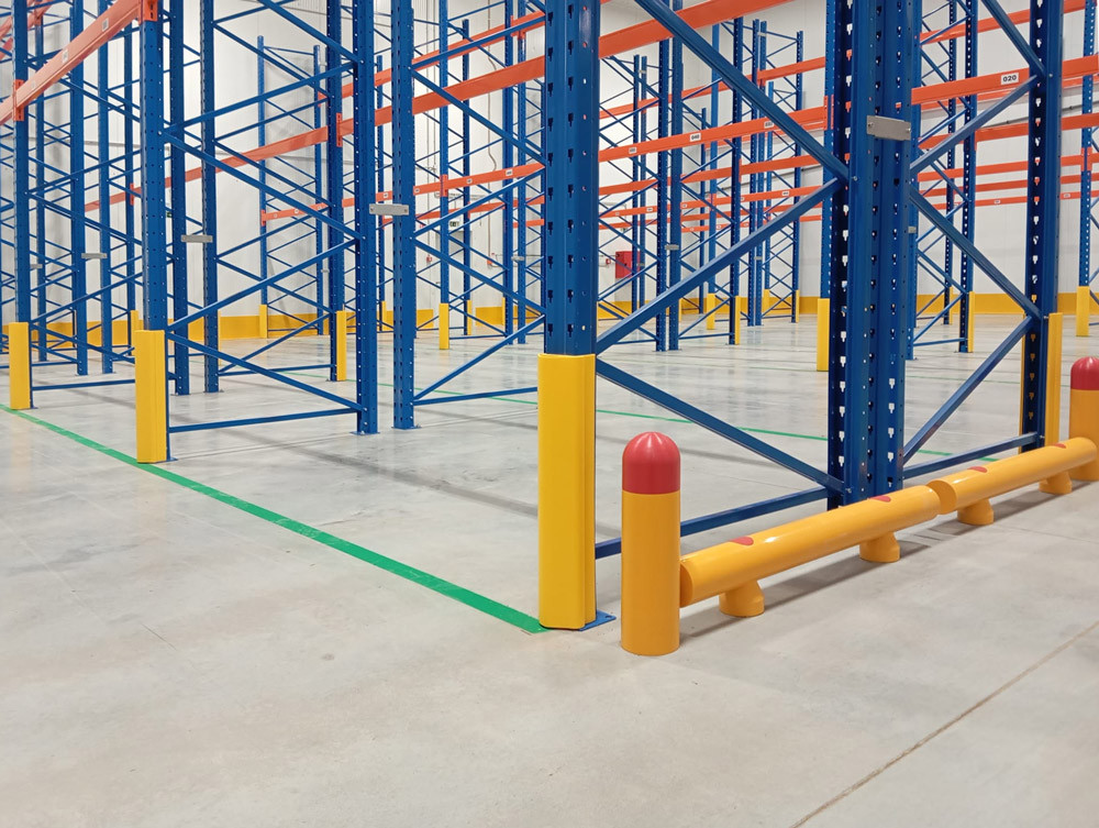 Rack leg protectors create an impact zone at the level where trucks most often come into contact with the structure. They reduce the risk of upright deformation and limit the need for repairs.