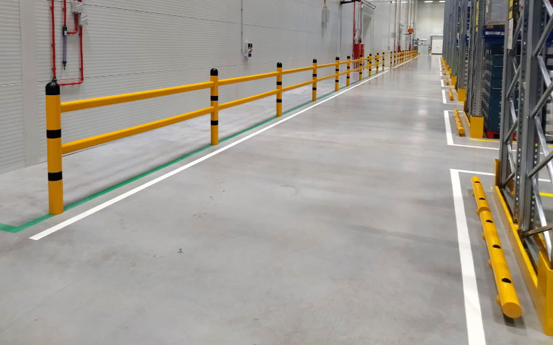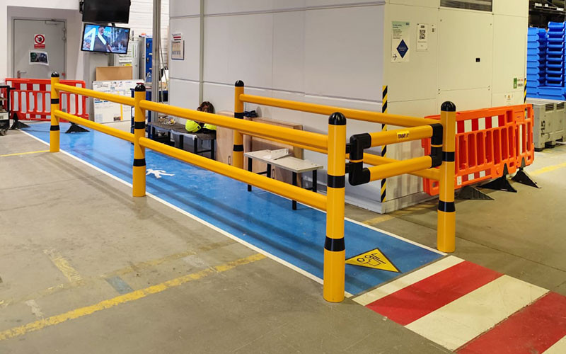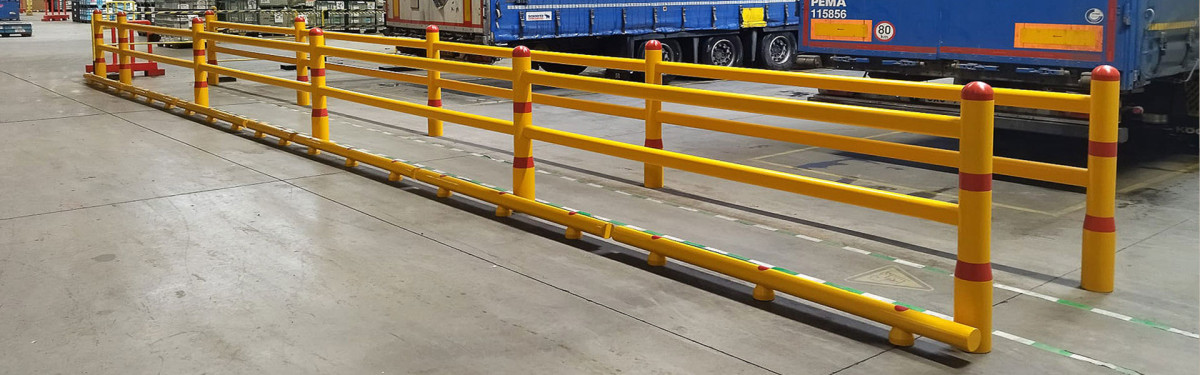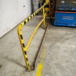 Railings are the basis for creating a safe pedestrian route – they physically separate the walkway from forklift traffic and prevent pedestrians from “ending up in the driving path”.