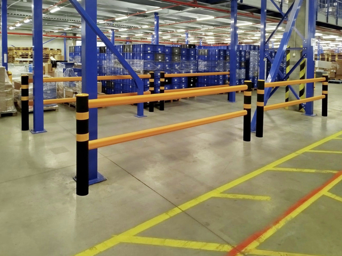In areas with higher risk (faster traffic, wider equipment, handling higher pallets, or stacked pallets), it makes sense to use elements with an increased structure. They help protect not only infrastructure, but also people near the operation.